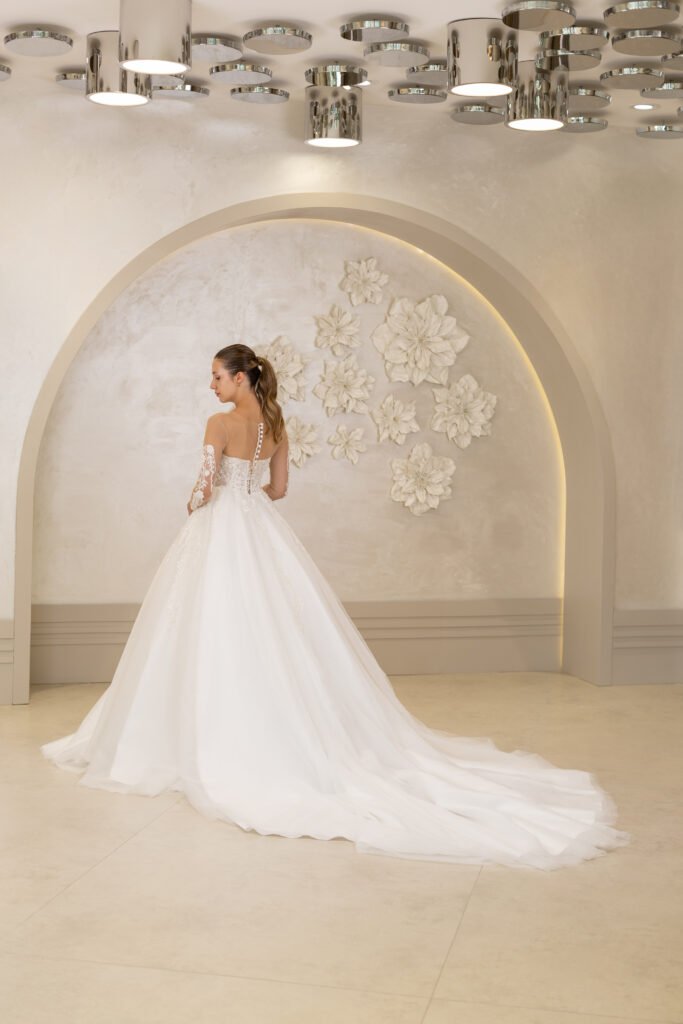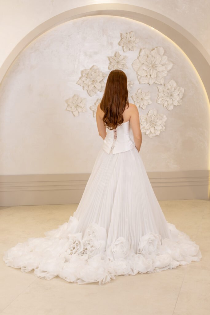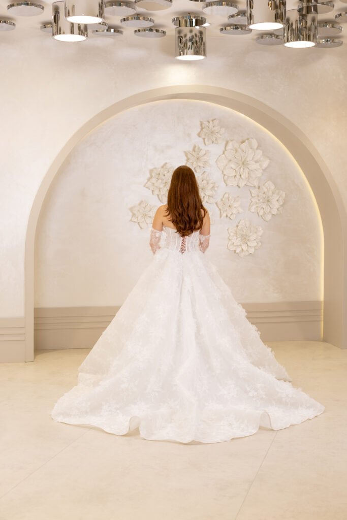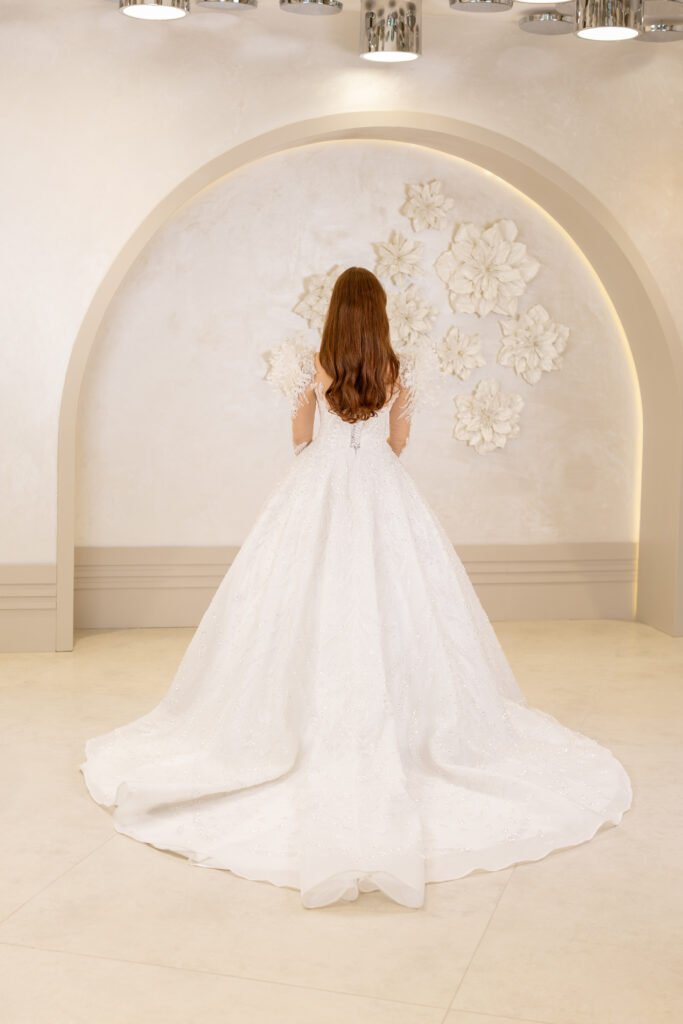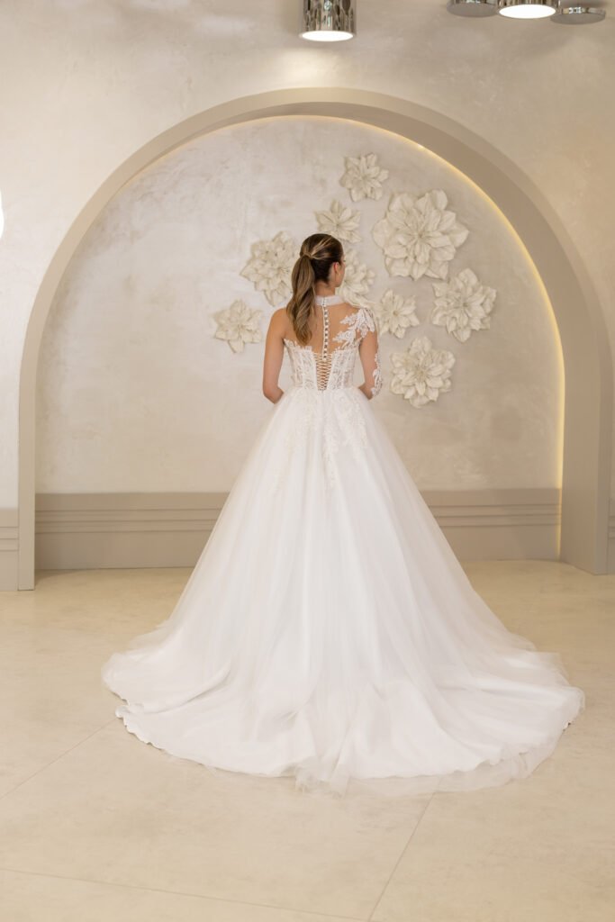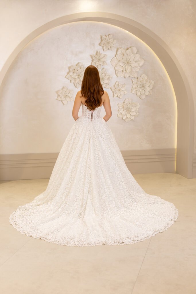 A kesim, üst kısımdan başlayarak bel hattını sıkıca kavrayan ve alt kısımda genişleyen bir kesime sahiptir. Dantel detayları, inci işlemeleri veya sadelikten yana olan tercihlerinizle, her tarza hitap ediyor.