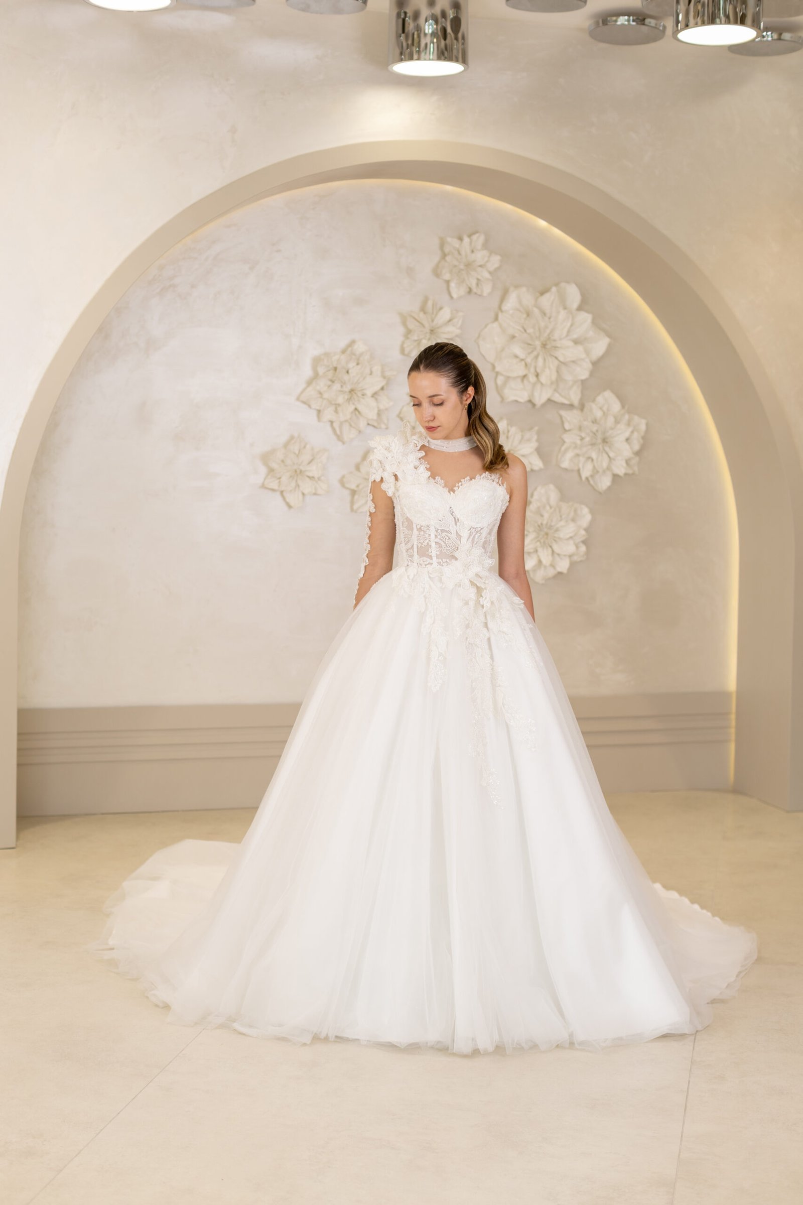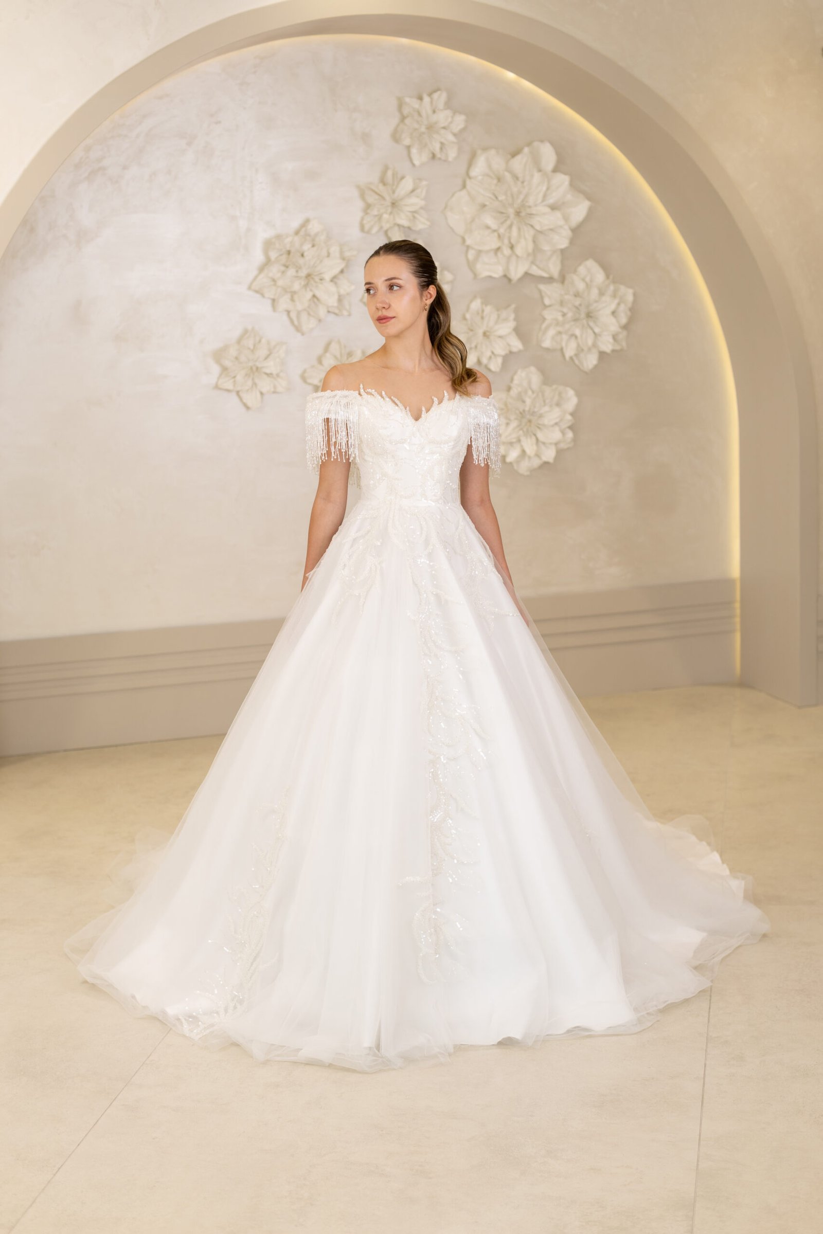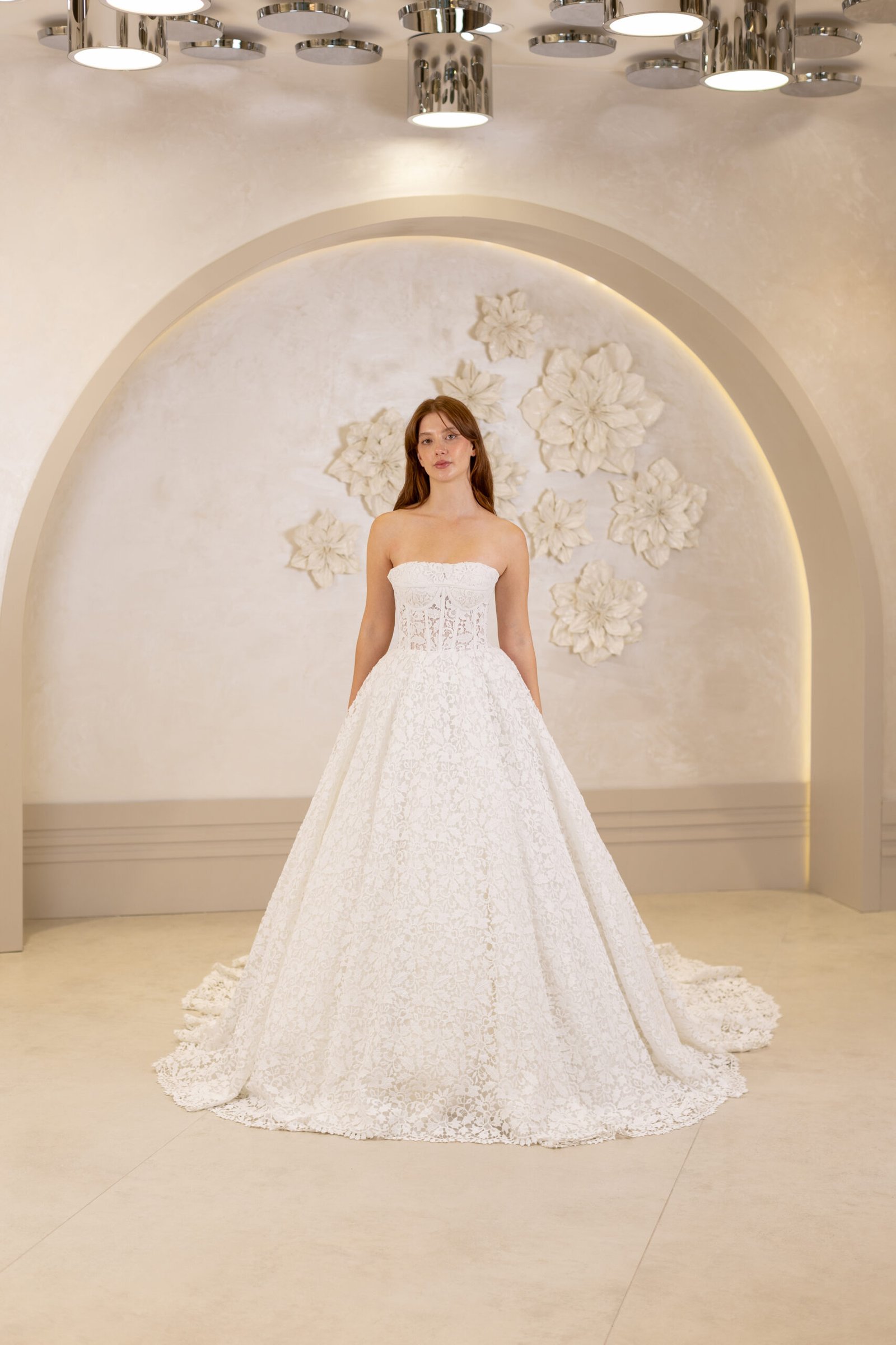 A kesim, üst kısımdan başlayarak bel hattını sıkıca kavrayan ve alt kısımda genişleyen bir kesime sahiptir. Dantel detayları, inci işlemeleri veya sadelikten yana olan tercihlerinizle, her tarza hitap ediyor.